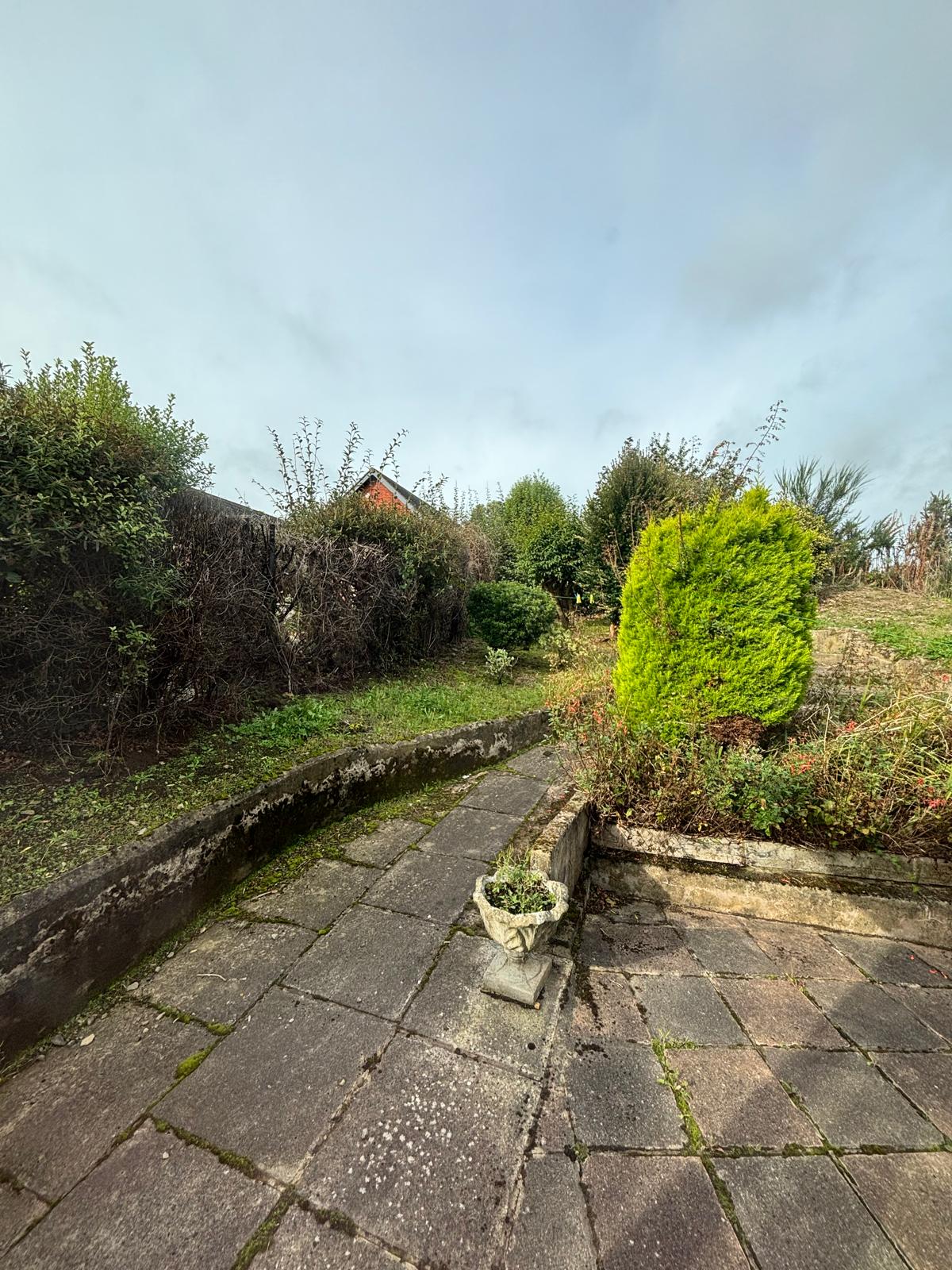 Neat gardens and paved patios.