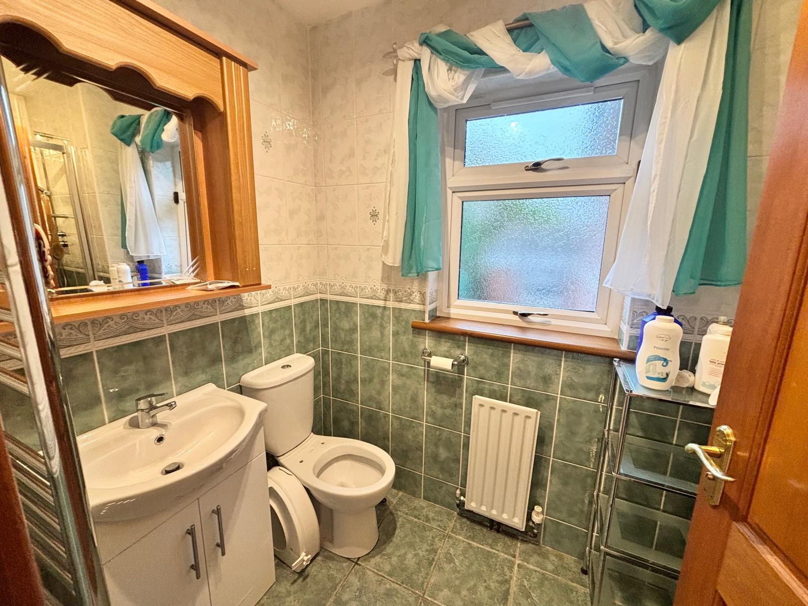 EN-SUITE – fully tiled floor and walls, white suite comprising vanity unit with mixer